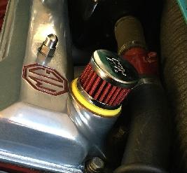 "You previously asked to supply photos from a Twin Cam owner who fitted a crankcase ventilation system air inlet by drilling into the inlet camshaft cover and passing a hose to the rear SU air filter. We have had no volunteers agreeing to drill into rare Twin Cam parts. Instead we are all going to fit a filter to the oil filler opening. I have loaded a procedure to the IO website".