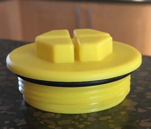 "The main difficulty is sourcing an adapter with a British Standard Pipe (BSP) thread of 11 threads per inch (TPI) and a parallel thread (BSPP). Most plugs are tapered (BSPT). A company in the UK has the correct item. The company is called Essentra and their part number is 498686. (Note: For some strange reason Hydraulic component companies list plugs with a 1.75" diameter as 1.5"). Essentra (USA) mainly stock plugs with a UNF thread and Essentra (Australia) mainly have Metric threads.