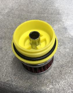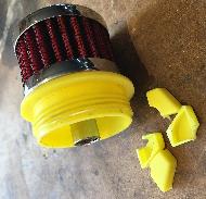 "The filter to use is the K&N part number 62-1015. This filter is 51mm (2") in diameter, 38mm (1.5") high excluding the tube, and the diameter of the tube is 13mm (0.5"). This filter has a chromed top which nicely matches the Twin Cam engine. Many K&N filters have a rubber top.