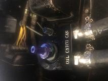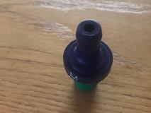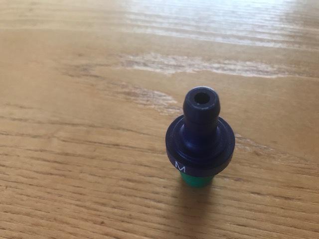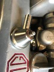 But now we remove the intake filter from top of the catch can, and install a PCV valve in its place. (Photos below compliments of Luc Van Helleputte via MGA Twin Cam Enthusiasts Group). The PCV valve shown comes from a Mitsubishi Lancer SNXM Part Nr 01130. It is a common "generic" PCV valve available from any auto parts store. Luc put this valve vertical in the oil catch can with a modified grommet that he made from a generic grommet D=5/8”. Do assure that the PCV valve checks flow in the correct direction from the catch can into the intake manifold.