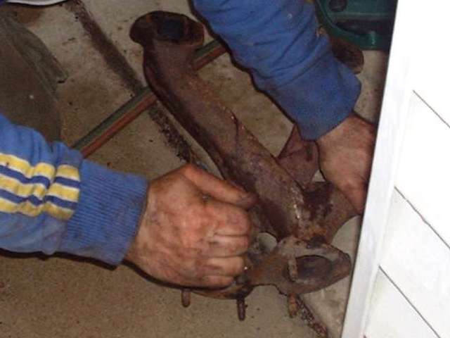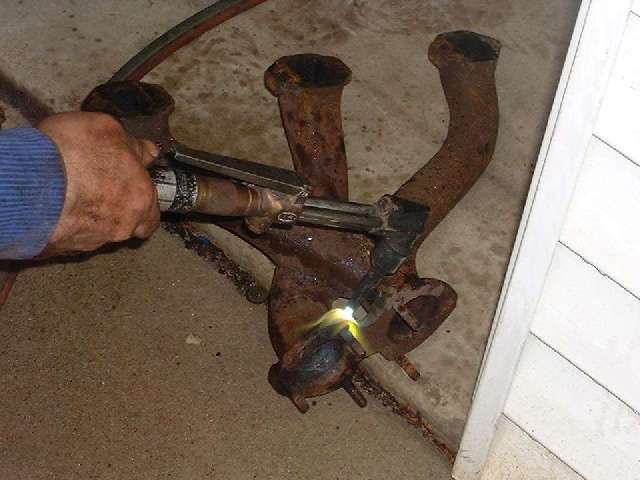 An exhaust manifold is a prime candidate for this method. One of the most common patients is a broken stud on the bottom end of the manifold where the exhaust pipe will connect. This also requires a LOT of heat, so forget about even trying to use a propane torch. An acetylene torch is the best heat source. A MAPP gas torch may suffice if the parent part is not too heavy. And as with any gas torch work, heavy leather gloves are in order, and maybe also a long sleeve shirt and dark goggles.