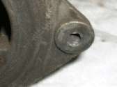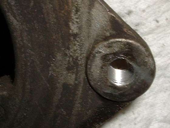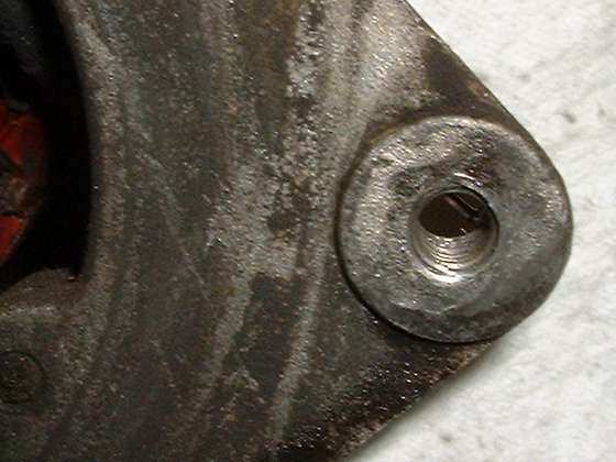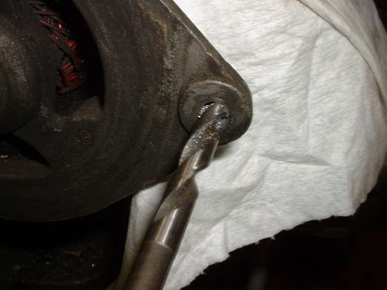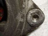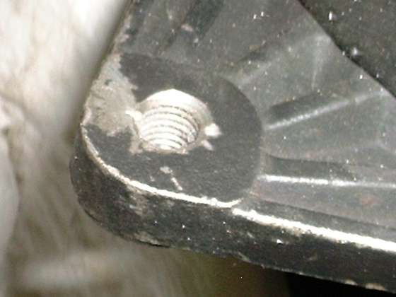 Here we have an easy way to repair a stripped out female thread, or to install a nice strong stainless steel thread in a softer part like an aluminum gearbox case. Immediately below is a picture of a generator where the tapped thread for the belt tensioner adjuster link bolt has been damaged by cross threading a coarse threaded screw into the original fine threaded hole. The second picture is a close up of the damaged. thread. This will be repaired with a stainless steel HeliCoil thread insert.