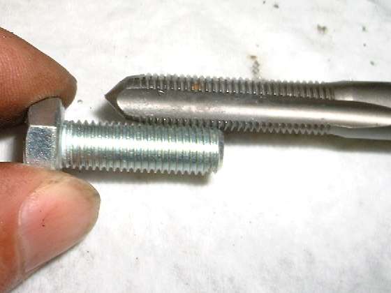 The last picture shows the new bolt screwed into the fresh thread, and it went right through with no binding, no burrs. In the case of a cast iron or brass or aluminum parent part, the new stainless steel thread will be stronger than the original material. This is especially good for critical fasteners such as a bolt holding a starter motor and threaded into an aluminum bellhousing (verified the hard way). This is also a great way to reinforce the threaded holes on that expensive new aluminum cylinder head. It is sometimes said that any time a screw is to be assembled more than once in an aluminum part it should have a threaded insert.