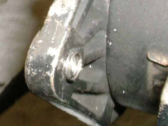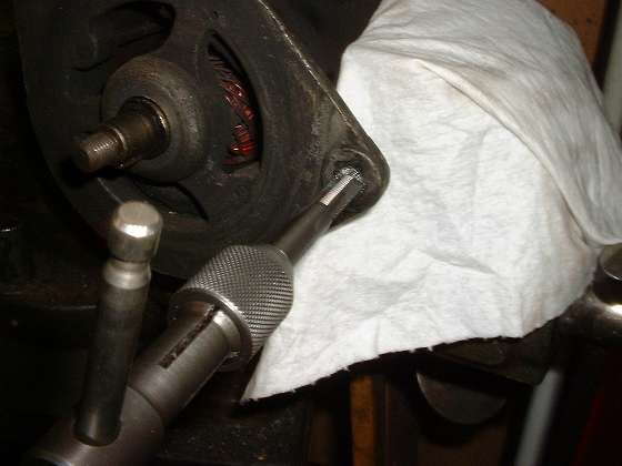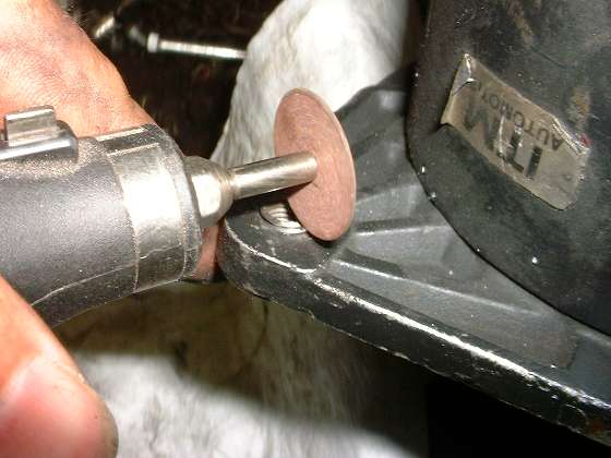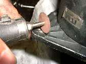 The HeliCoil inserts can be purchased in various lengths. Shorter coil lengths are convenient for installation in thinner parts such as this generator end plate, but I don't always have the shorter coils on hand. In this case the standard length HeliCoil extends through the part and a few turns out the back side as shown in the picture at far left above. If you try to pull or break the wire it will either pull completely out of the part or will deform the thread such as to make it bind on a new screw. As such, the appropriate means to cut off the excess wire is with an abrasive cut-off wheel (second picture above). Here too you want the coil to finish flush or below flush with the surface of the part. You could cut the wire close to the surface and finish by grinding it flush. In this case I'm not terribly particular about appearances, so it's easier to simply cut the wire below the surface, leaving a small notch in the edge of the threaded hole (third picture above). If you were installing an extra length HeliCoil in a shallow blind hole, you could cut off the remaining exposed tail in a similar manner.