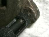 On the right above is a picture of the HeliCoil insert and the three piece installation tool kit. The installation tool kit consists of an oversize tap, a hard plastic coil guide, and a threaded driver with a notch on the end to catch a tab on the threaded insert. You will also need a tap driver handle. The HeliCoil kits are available for most standard thread sizes, inch sizes and metric as well as a few other odd sizes. Kits with the tools and about 10 inserts may cost $10 to $40 depending on size and where you buy it. Additional HeliCoil inserts are generally less than a dollar each in packs of 10.