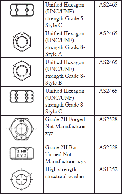 1. In addition to the indicated grade marking, all grades, except A563 grades O, A and B, must be marked for manufacturer identification.