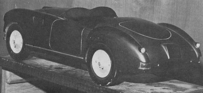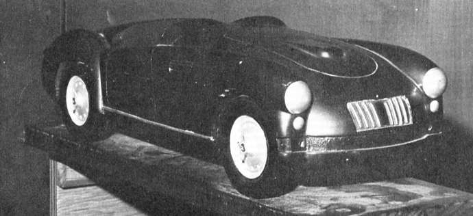 This wooden model was used in wind tunnel tests. Note the raised license plate holder which was deleted when the final MGA design was adopted.