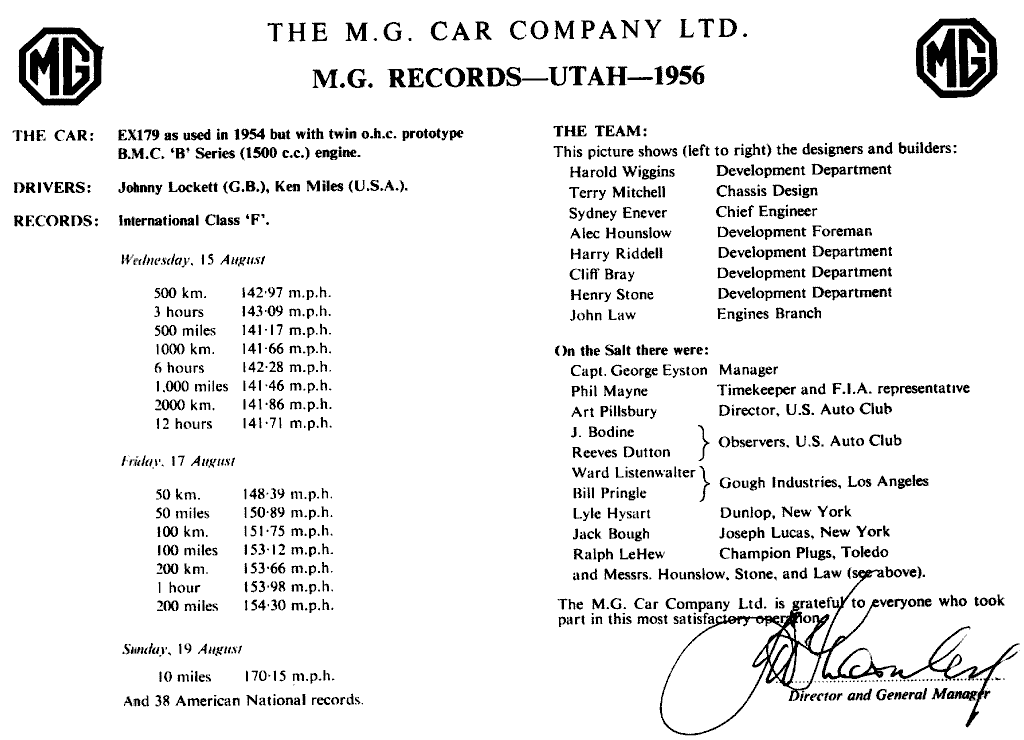 MG Records at Bonneville in 1956 -- (Click for larger image)