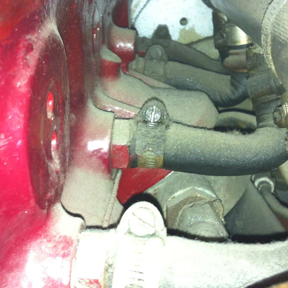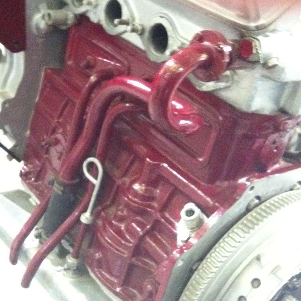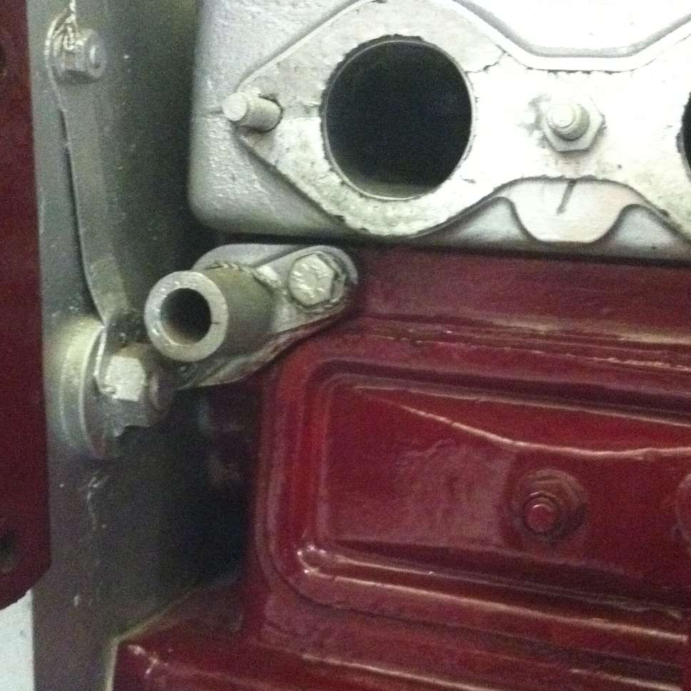 Below is a water pipe modification illustration as might be done on a production engine. This shows a single outlet at center of the head, including the production type reservoir tank. If there was a front top port, it may be blocked with a cover plate. However, the production engine includes a large water outlet on left side at front of head, so the center top port is an auxiliary outlet. This might increase water flow in a competition engine, or might be done as a safety feature to relieve any steam pocket that might form in the head under "full chat".