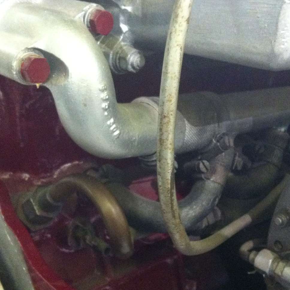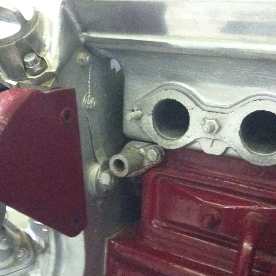 Above left is a water pipe on a prototype Twin Cam engine. Above right is the water pipe on the EX186 engine. Notice on both there are two outlet pipes from the head, front and center ports, which merge into a single pipe going to the water reservoir at the bulkhead. These are apparently the only water outlets from the head in these engines (with no water passages through the head gasket).