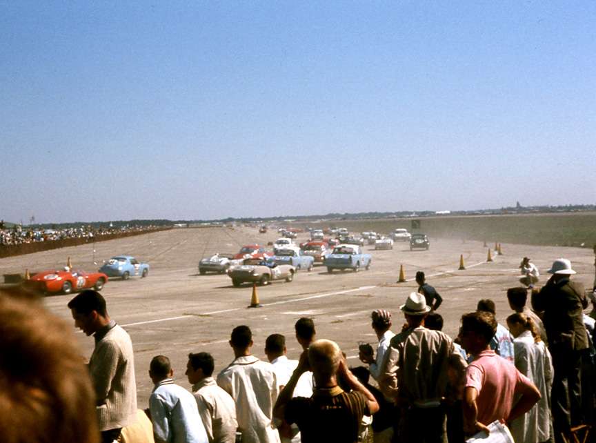 There were two Austin Healey Sprites running in 1961 which were entered by the Donald Healey Motor Company. They were driven by Joe Buzetta/Glen Carlson and John Colgate/Ed Leavens: these finished first and second in their class. A third Sprite was driven by Cyril Simson and Paul Hawkins. The preceding 4 Hour Grand Touring race had 6 Sprites in the first 8 places: Ed Leavens drove in this race as did Stirling and Pat Moss, all in Sprites.