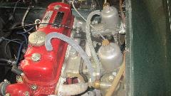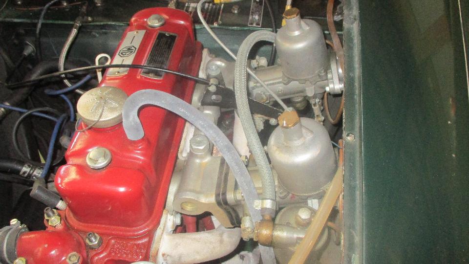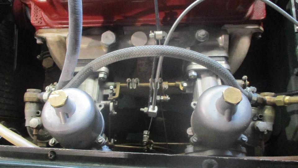 This is an upgrade replica 1600 engine, as the original engine is long since gone. The SU H6 carburetors are period correct for this car, although the intake manifold is a later model substitute.