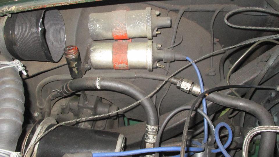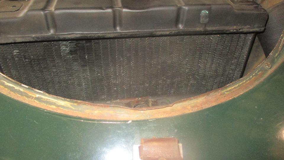 Proudly showing off the original cell core radiator, front mounted battery, and modern coolant recovery bottle.
