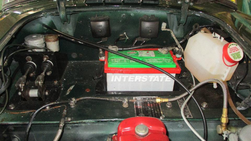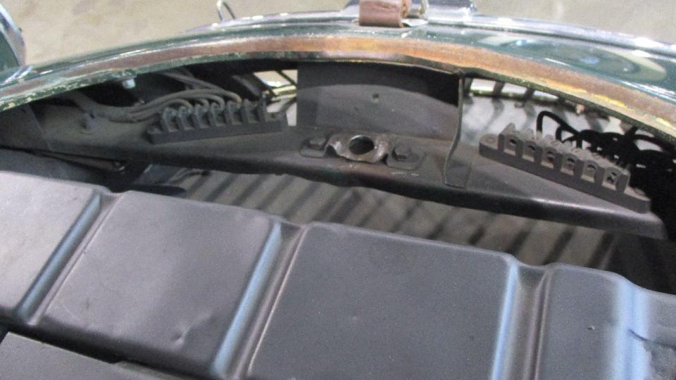 On the bonnet latch brace there are screw post barrier strip connectors to do away with the sometimes troublesome snap connectors. Interior with special dashboard with large tachometer but no speedometer.