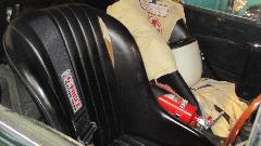From historical photos, it seems the rear quarter windows have almost always been hazed over in translucent white (most likely just fading of the original Perspex plastic panels). Interior is sporting the racing seats, and a small diameter roll bar that was all the rage back in the day, but only passes modern certification because it is grandfathered into prior historical approval.