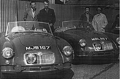 The team for the 1956 Mille Miglia - Peter Scott-Russel and Tom Haig with Pat Faichney and Nancy Mitchell in 'Mabel'.