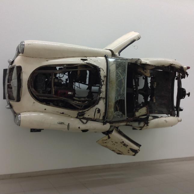 A real work of art. This MGA was owned by Charles Wilp. In May 1963 Arman, a French artist, created an explosion inside this MGA after which the remains were exhibited in several museums. Watch the video at www.youtube.com/v/d3KFeiuduks.