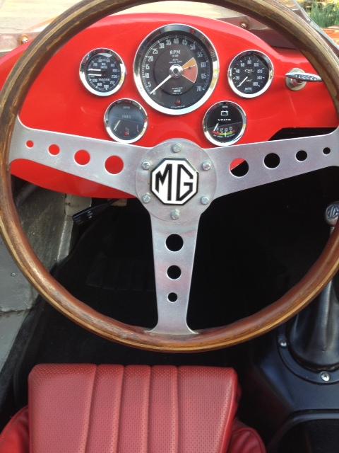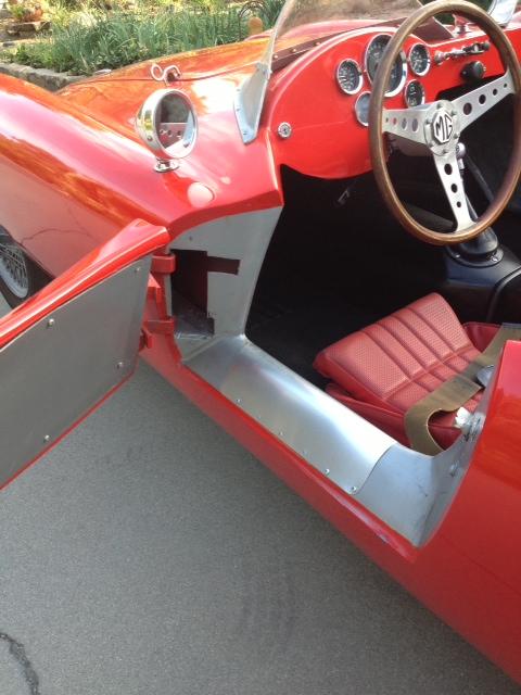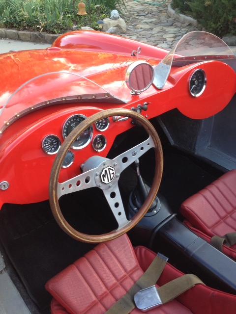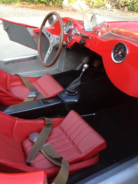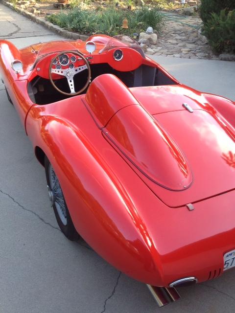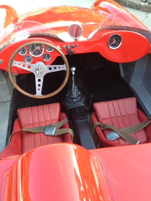 This one sold by RM Auctions in 2007. It is based on a 1962 MGA DeLuxe chassis with Judson supercharger and has a remarkably original Devin fiberglass body, still with original shipping tags when found. The red interior features MGA Competition Deluxe seats.
