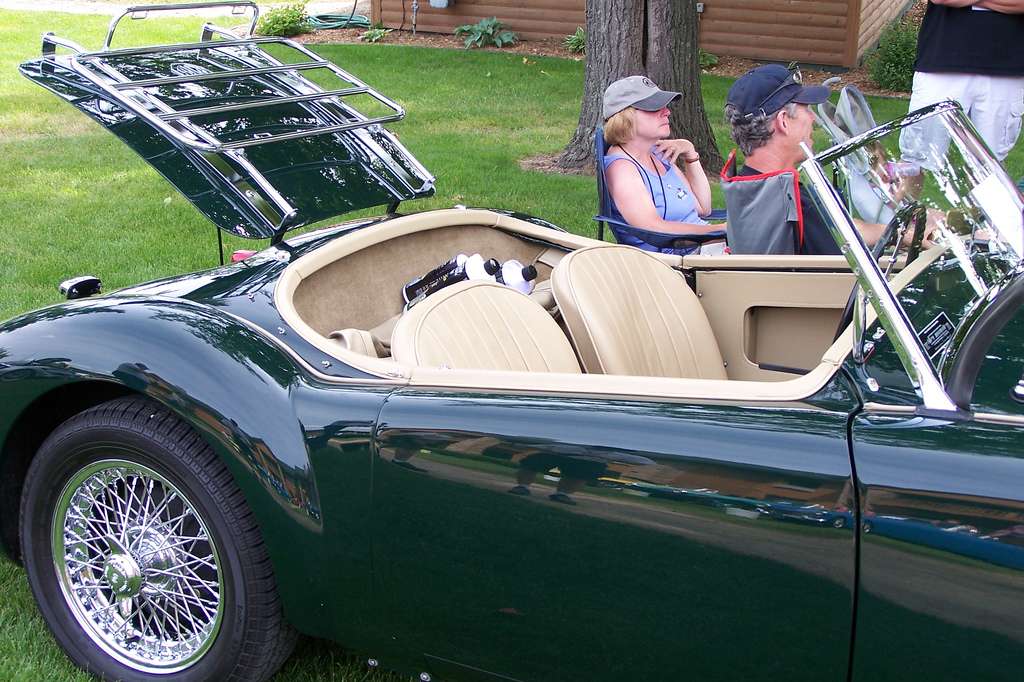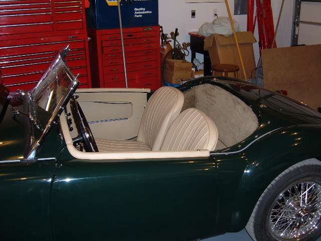 This car was a parts car when the owner started. He had never owned, driven or seen another MGA. The body shop that did the body panel replacement and painting did not know, nor did the owner know of the body mods. MGA rear seats are as practical as Spridget rear seats. Not at all. This car did have a rear seat in it, but was removed, and Scarborough Faire offered us a set of custom panels back there similar to the originals from our patterns.