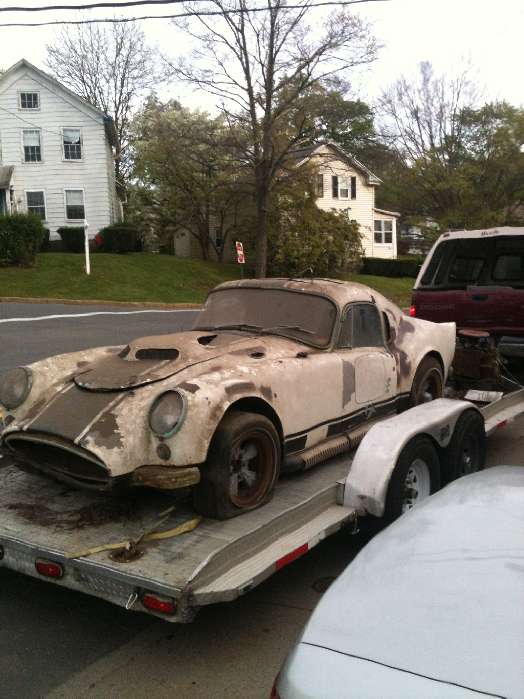 The sunroof came out of an early 60's VW Beetle as did the headlight assemblies. The Shelby Cobra as you might guess was the inspiration of the grille area and the roof line was inspired by the Mustang Fastbacks. The window slate idea was taken from the Mustang of 1969, they were hand made. We had also put a hand made replica of the inverted rear wing from a Mustang as well. It also had a chin spoiler on it. The side pipes were installed by the class. When finished it had wire wheels with knock offs.