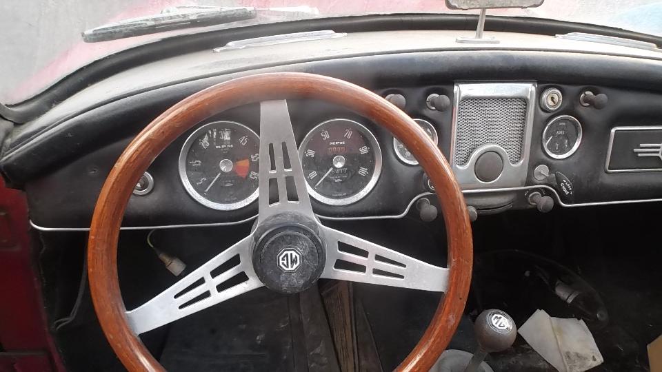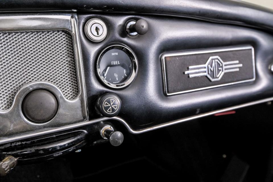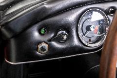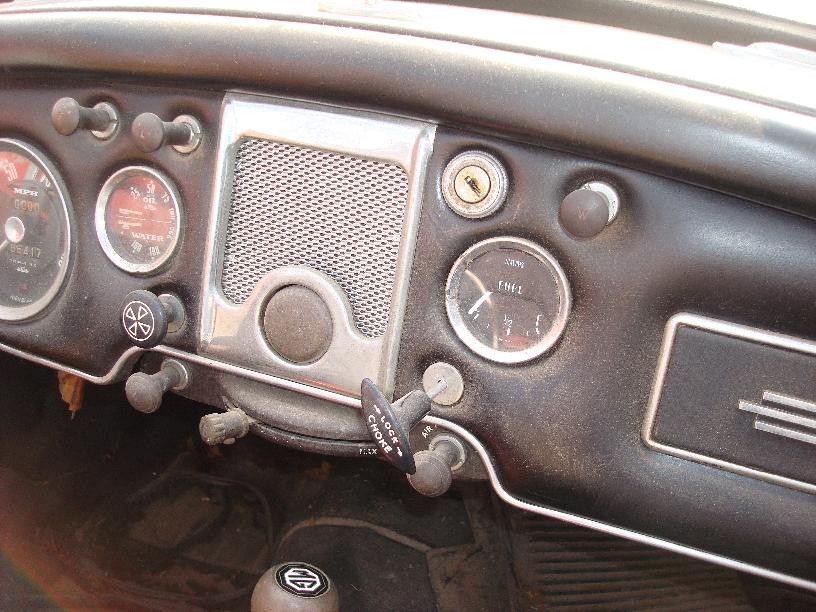 7746 = Centigrade water temperature gauge was original to early MGA. All four dash instruments were originally Jaeger. The Smiths fuel gauge is not original. Ignition switch is probably not original. If it is original,then it is mis-oriented. The Start and Choke knobs look like MGB or MG Midget parts from later issue. Radio blanking plate with wrinkle black paint is MGB style, commonly sold by Moss Motors as replacement for MGA. Original MGA part was vinyl covered for the Coupe.