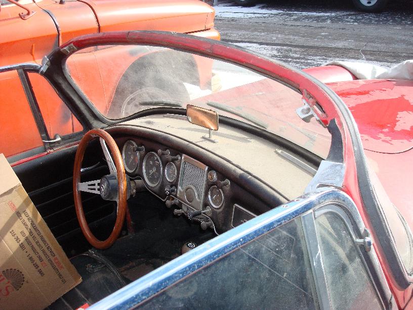 7743 = Windscreen frame appears to be Original style MGA Coupe part (before cutting off the roof). Has accessory screenwasher jets.