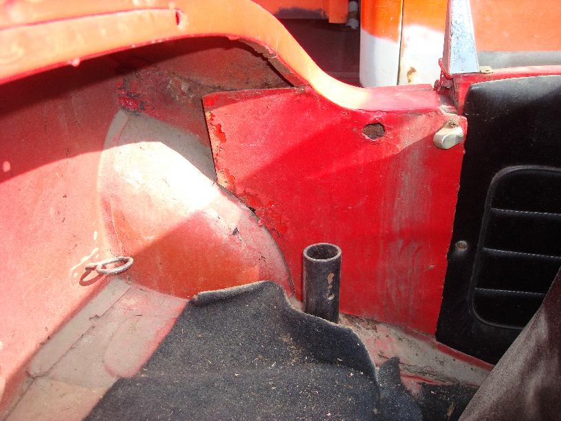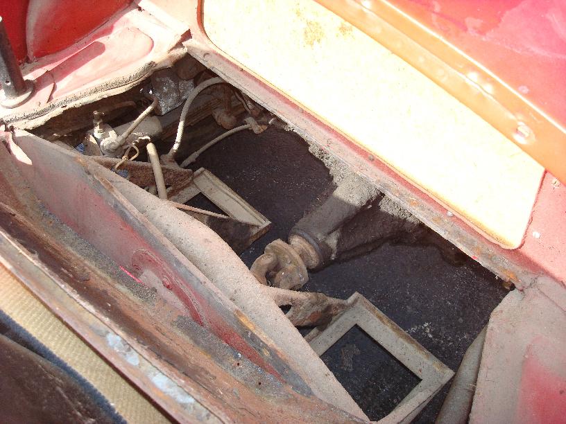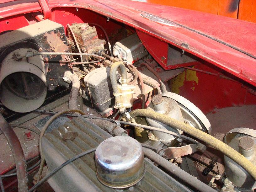 "I plan scraping the old red paint off the tag under the hood. The VIN on the passenger side floor is impossible to make out. I think its worn away. My friend is going to come by with acid and try to remove some of the minor rust. I plan on taking pictures of the hardtop tomorrow. I spoke with the person that I bought it from, and he said that he knew about the car since 1971, and it was always like this. He also said that the previous owner knew it was like this for many years. I asked him if he had the metal hardtop on the car often. He said that it fits like a glove, and it has been on the highway many times, with no issues".