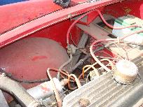 Today I had a first hand scratch an sniff session with this car. There is a large tray set into the heater shelf to hold the battery. The heater box was then moved to the side and modified to be narrower with the matrix core horizontal below the blower. There is a factory original style radiator blind (but the bead chain and under dash actuator handle are missing). It didn't dawn on me at the time to look for the turn signal relay (1500 type), but it may be hiding behind the relocated heater box (which would be difficult for service).