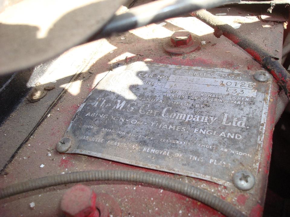 This one is a bit of a puzzle (so far). It is supposed to be chassis number 10125, the 25th MGA off the assembly line, but the Coupe model didn't exist at that time. At first glance it appears that everything forward of the door latch is Coupe (except the missing top), and everything aft of the door latch is roadster. Closer inspection is pending. Stay tuned. -- The car is currently in Naperville, Illinois, USA