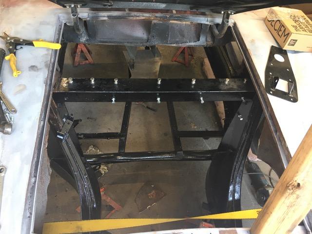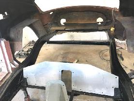 Dad got the car in July, in southern Ontario. He removed the Chevrolet chassis shortly after. An MG vintage racer, Jim Holody, donated an MGA frame. It has been stripped, painted and fastened to the body. Thanks to your site, we now know what the sheet metal looked in 2006. The plan is to fabricate something similar. Possibly in aluminum. The heater shelf, front and rear bulkheads, and floors are aluminum and ready to install.