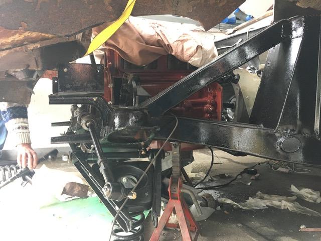 Lino Baggio, another MG racer provided the transportation and donated an MGB engine. It was installed today. We have to find a few parts before the MGA gearbox can go in. The suspension is almost complete. Again, a few parts have to be sourced.