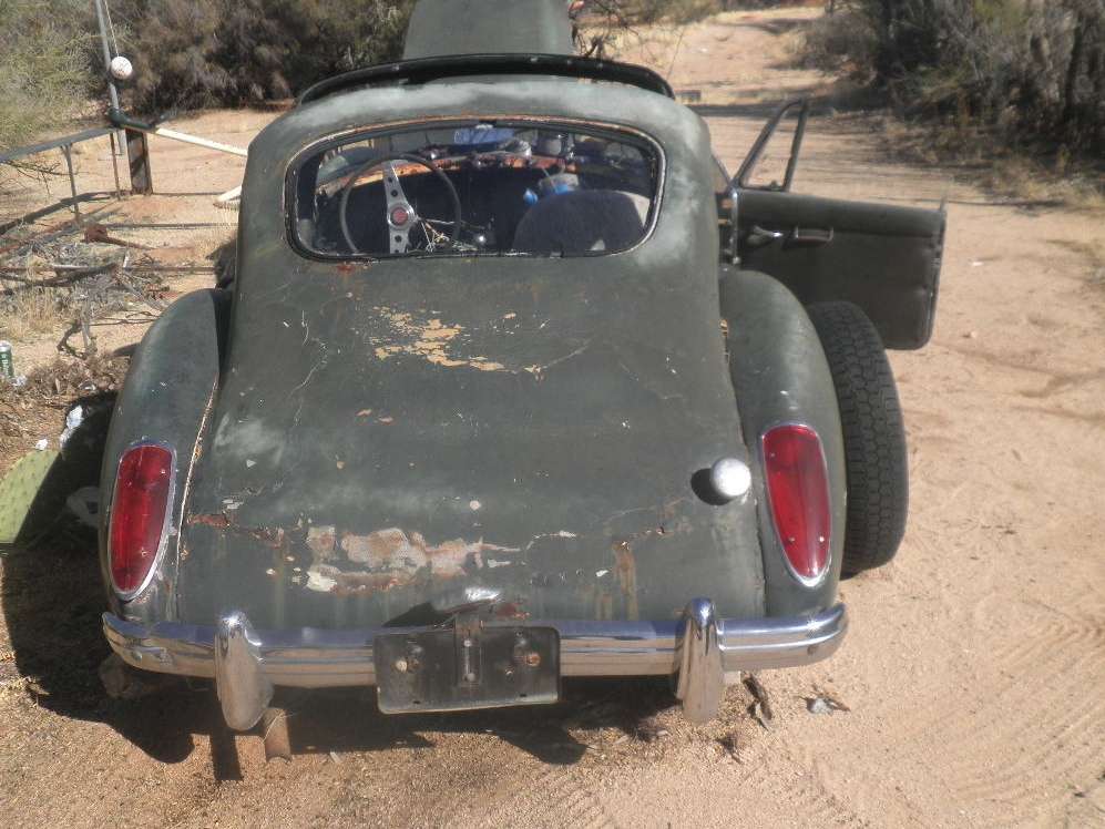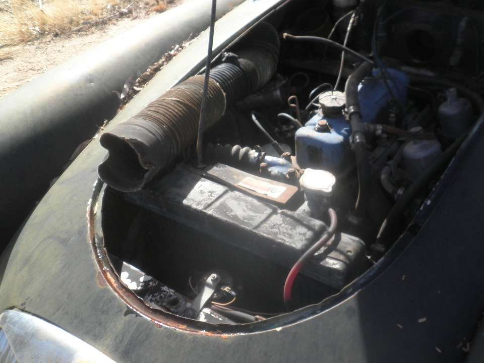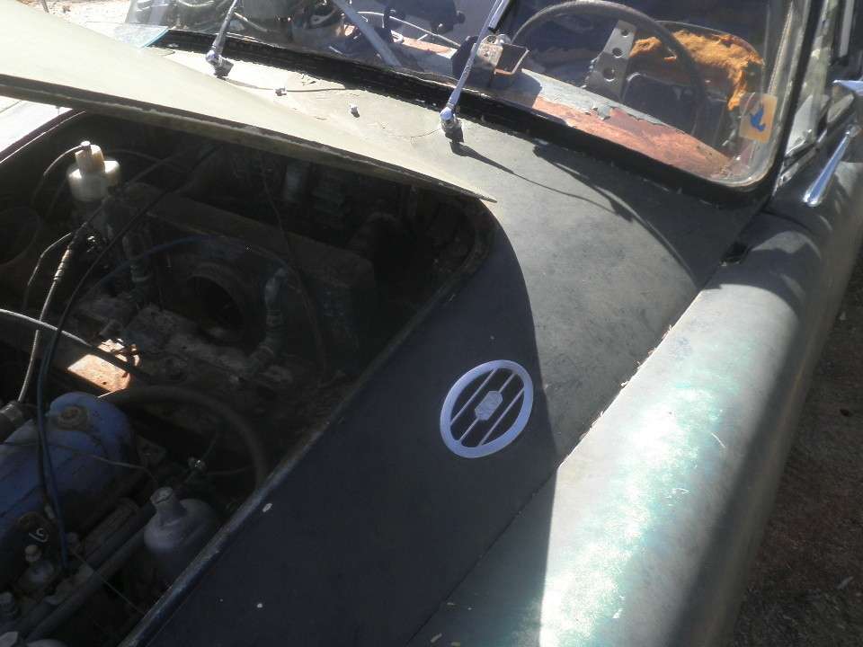 "Does everyone think this car was a coupe? I noticed the LF fender (wing) has the rectangular hole for the windscreen bracket, but I can't seem to see an equivalent hole on the RF. One of the engine bay shot *just* shows the master cylinder cap and suggests it might be a Dunlop master cylinder. What do you think about those radiator brackets? That is a strange airbox (or whatever) behind the engine".
