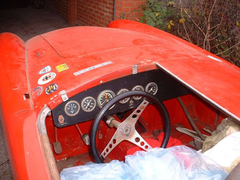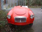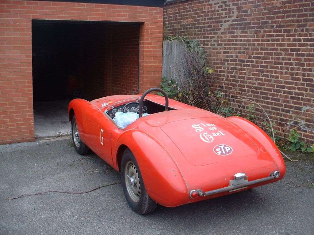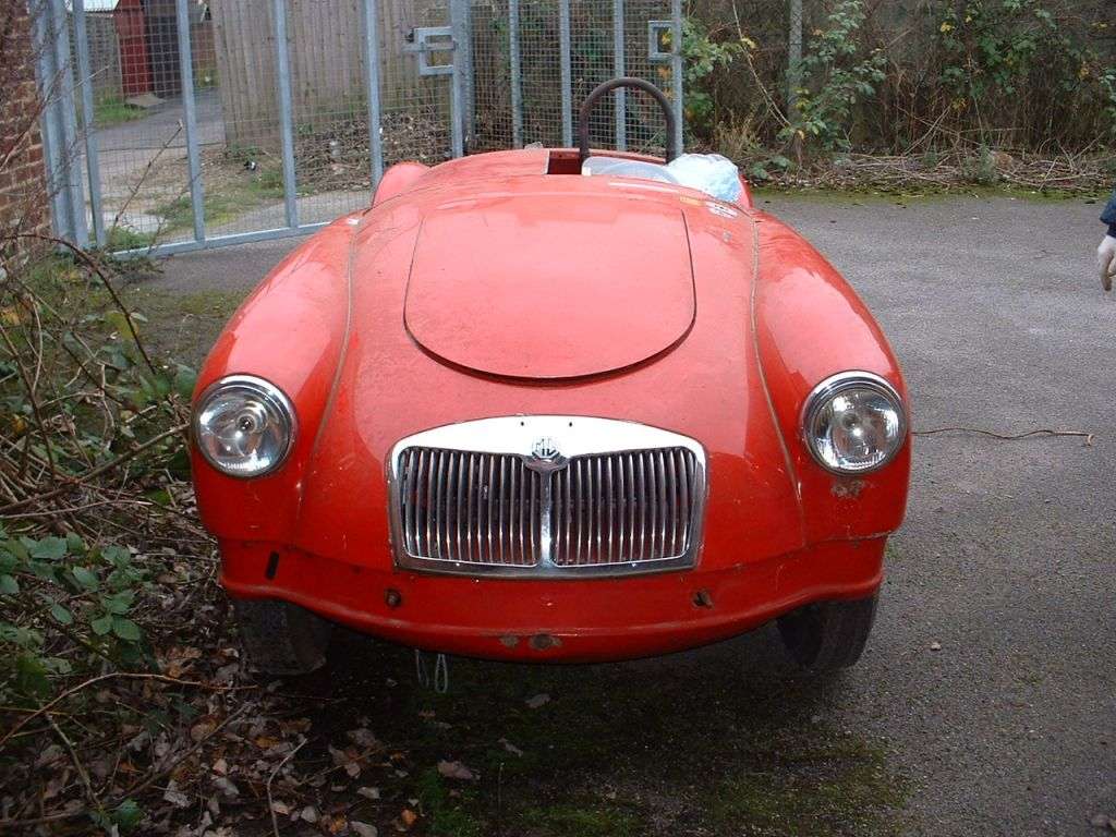 The MGA is now found in England, chassis number HDR43/68744, 1959, Red (originally white). Owner James Cottingham hopes to put his spare Ferrari engine back in it and take it to goodwood one day. Since there were no MGA 1500 "Deluxe" cars, it may remain a mystery where this very late model MGA 1500 got its Twin Cam chasiss parts.