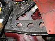 I don't have a picture of the car or the chassis number yet (but hopeful). These pictures show extensive drilling of the chassis frame and other modifications commonly done for MGA race cars. Peter Wood has mentioned that all the early racers had their chassis drilled out like this. We know 1MTW and 2MTW did because this is a replica of those cars made by their current owner.