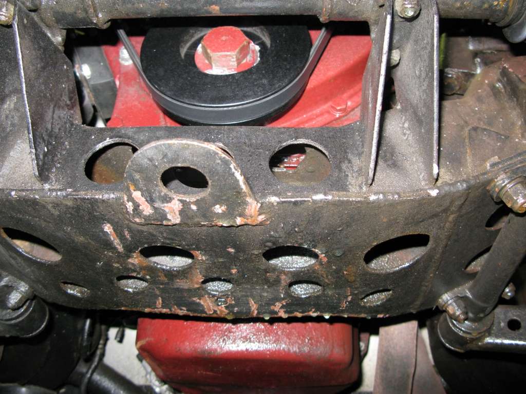 "However what might interest you is the lightened chassis. You will see that the chassis has been extensively drilled out as have various front suspension parts. The side members have also been drilled out and you can just see this in one photo".