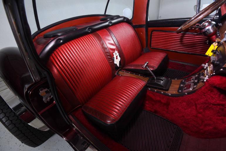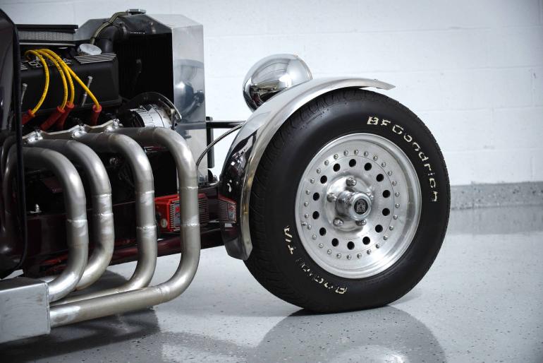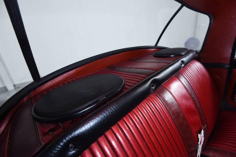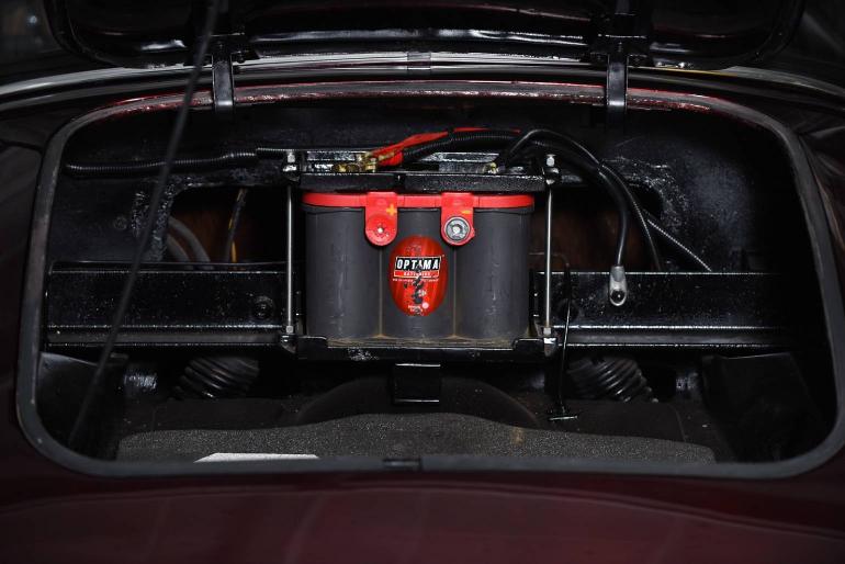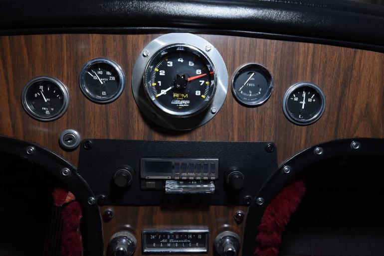 "Rambler" AM radio for the vintage look, plus a slightly more modern digital radio with cassette tape player. No floor in the boot, battery in back, no spare tire. So the pit crew follows in another vehicle.