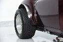 After the walk round beauty shots, the front suspension was a bit of a retro shock. And perhaps we need to amputate the passengers' legs half way between knee and ankle? (No foot wells).
