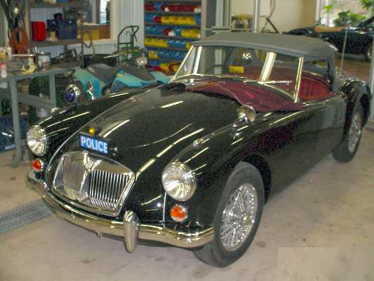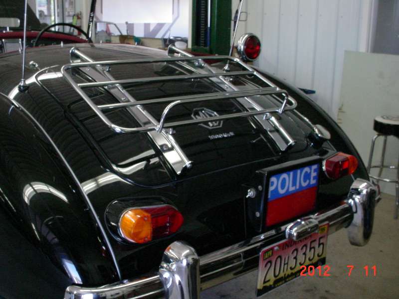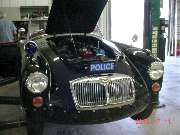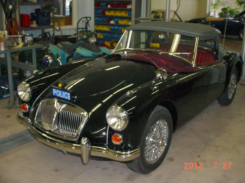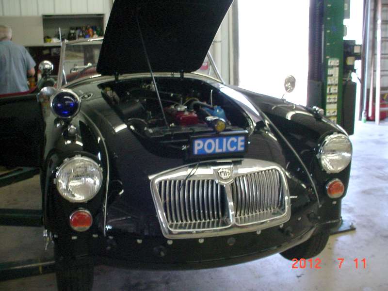 "I was very fortunate that I was contacted by David Cox who saw a request in a newsletter that somebody was kind enough to post of my need of police car spares. David had the spares and located for me the ones he didn't have. I did a total frame up restoration and because of David's help the car is correct. I had changed to wire wheels long before I knew my car was a police car and I can easily change the wheels again (though I like the look with the wires). Other than that and a luggage rack the car is spot on". -- Ken Geljack, 5 Aug 2012