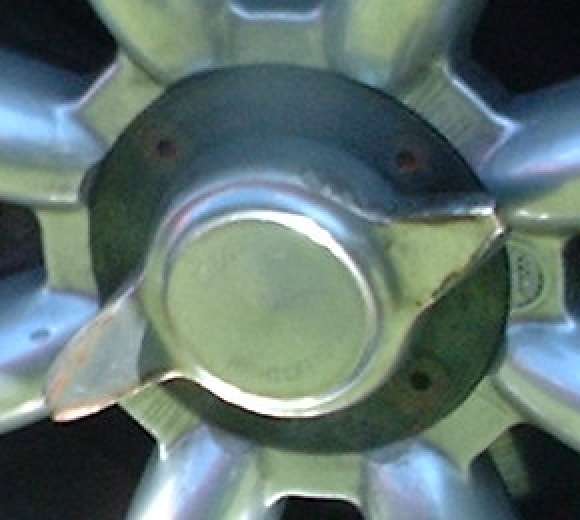 The center picture (from the UML Summer Party Reunion in August 2004) shows a special adaptation of a Compomotive wheel for a Twin Cam hub. The last picture is a close up of the center adapter. Here the wheel was machined in the center to accept a specially machined steel insert which duplicates the mounting configuration of the Twin Cam or "Deluxe" wheel. As far as I know, this is a one of a kind special built set of wheels, and you can't buy them at any price. But it was a jolly good show to make these things for a special need in racing.