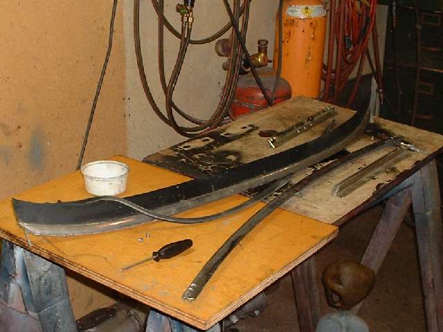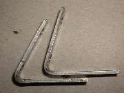 Now picture some of the small brackets that give most of the problems. At the left above are the bottom corner brackets. The one with the more acute bend has the correct angle, while the other piece is as it was received from Moss Motors. This was not difficult to reform, just a bit tricky getting the angle right, which required a couple passes at trial assembly. I later procured another pair of these brackets from Clarke Spares and Restorations. Those parts were a little shy on the bend angle as well, but much closer to being right than the Moss parts.