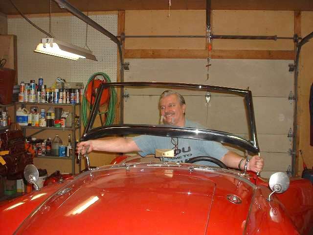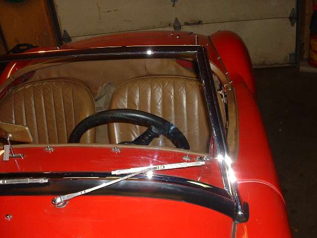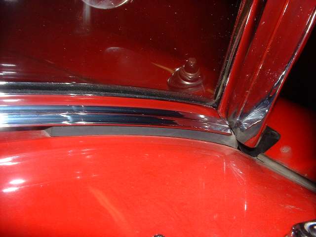 Someone asked about the space under the windscreen frame, so here's the skinny. Near the side posts it is about 5/16" to 3/8". From there it gets progressively larger growing to about 1/2" - 9/16" at the center. It is not necessarily the same on all cars, and it can vary quite a lot. The bottom rubber seal extends forward about 1-1/2" to lie on top of the body cowling. Aside from the rubber seals near the sides, the rest of the space under the full length of the frame is left open. Sitting inside the car you can look under the windscreen to see the wide rubber bottom seal that extends forward.