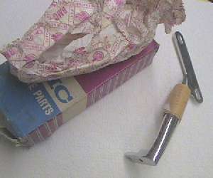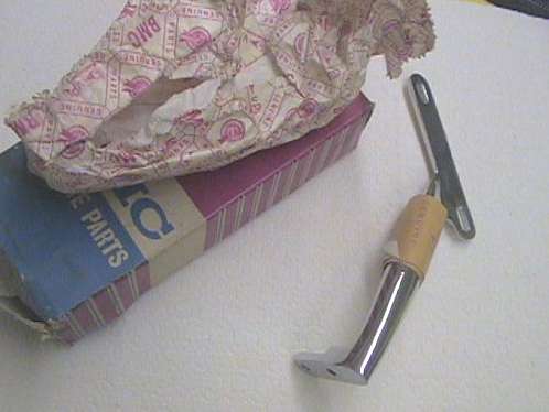 Here is an interesting bit of trivia that may be good for the concours enthusiasts. Two photos on the left come from an eBay auction ad for an original in-box MGA Grab Handle (right side), never installed on a car. Center photo is a typical replacement part grab handle (right side). Photo on right is the right side channel of the MGA windscreen.