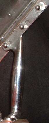 Now notice the original grab handle has only two slots and no center hole. Inspection of original non-tampered cars will reveal a small round center hole in the grab handle, which of course is not adjustable. Implication here is that the center hole was drilled in assembly