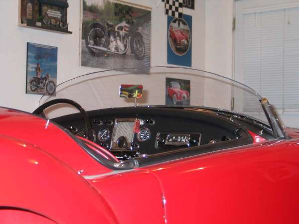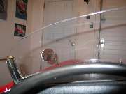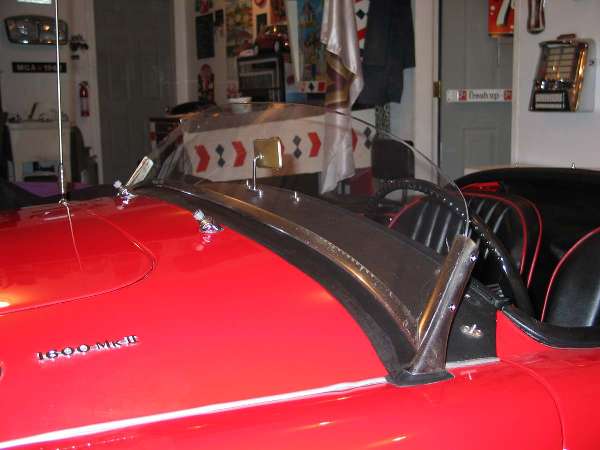 On December 2009, Jules Desbiens <jdesb@videotron.ca> wrote: "I made one for my MGA last year from an old windshield frame and I use a Perspex glass. It's not so hard to cut, but I just follow the lines of the cowl. I have 7 inches at the center. I just need to send the frame to chrome and that's it. I like to drive my MGA with that sport winshield, it looks very cool".
