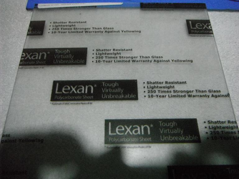 Research on the Web revealed that a polycarbonate replacement would be the material of choice. It also revealed that this stuff was expensive. Moreover, polycarbonate has a tendency to yellow with sun exposure and to scratch, and given my application, I was worried about these issues. It seemed like Lexan Excell D, or Lexan XL-10 were my best choices, but I couldn’t find these materials readily available in small pieces. Eventually, I elected to use Makrolon AR. “AR” stands for abrasion resistant. I ordered my piece from TAP Plastics. It was about $40 with shipping.