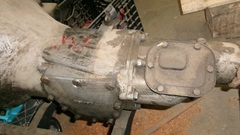 for the interlock arm rising up when reverse gear is selected. Factory documentation has this illustrated wrong (backward) in Workshop Manual and in Service Parts Lists, leading to a lot of field assembly errors. Also the bellhousing is smooth with no ribs, and thin bolt flange, all as original for this model. This will be the gearbox that belongs with the Coupe currently under restoration.