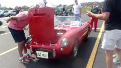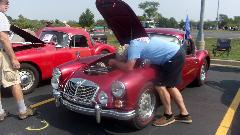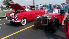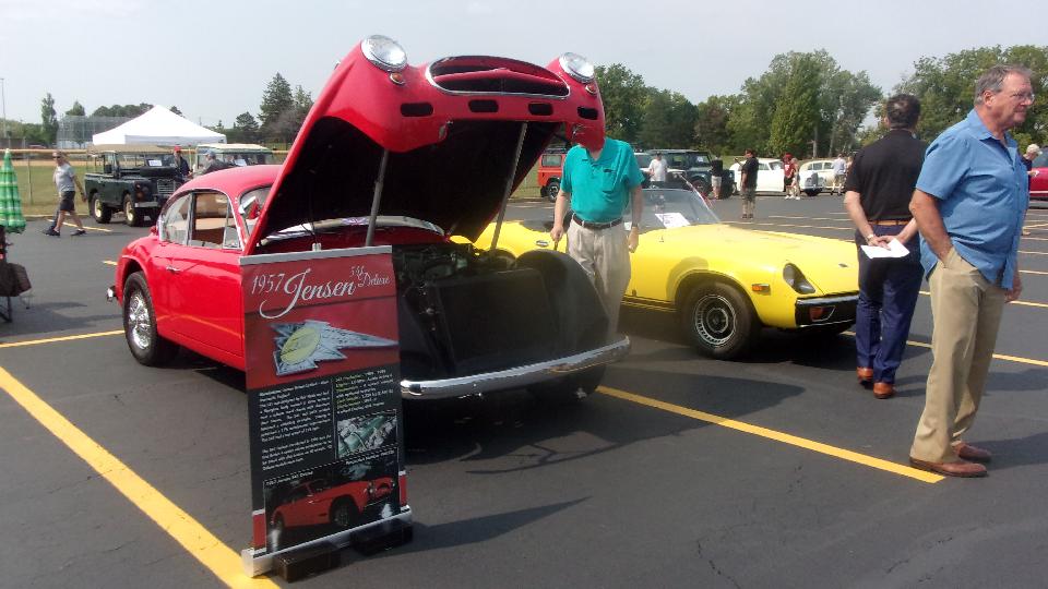 On to the Jensen Healeys, below (at least I know most of those). The red coupe with the bonnet up is a 1957 Jensen 541 Deluxe Coupe (sometimes called "Saloon"), There was a Jensen Interceptor here somewhere, just seen as it was leaving.