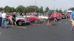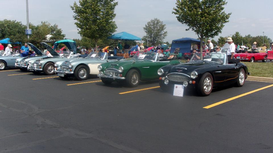 More big Austin Healeys, followed by a swarm of little Austin Healeys and MG Midgets (collectively Spridgets).