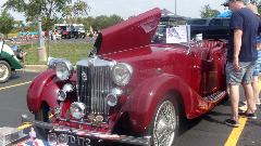 Finally I think the big red coupe with the bonnet up must be an XK12. For sure the large vintage beast is a 1936 SS Jaguar 2-1/2 Litre Saloon