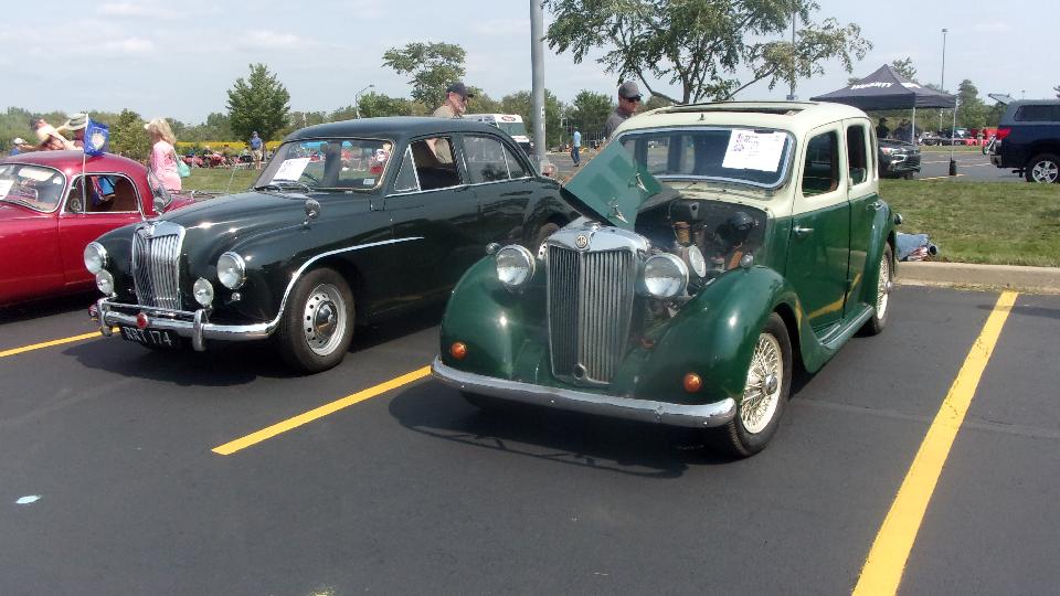 A nice MG Z Magnette (ZA),, and the green and cream car net to it is I think an MG YB 1951-1953. Maybe 8 to 10 MGA (seemed like there should have been more hiding elsewhere).